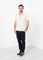 The Arrigo by Pence incorporates a unique micro pattern in the modern silhouette. Hook and eye closure with single button, zip fly at front. Four exterior pockets. Color Navy. 97% Cotton, 3% Elastane. Made in Romania. Jacob is wearing an Italian 48.