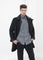 A sheath of durable cotton fabric, the Taban Coat is worked into a military look with two front patch pockets, vertical welted pockets and a double breasted button closure. Leather detailing is seen throughout the coat. Back vent at hem. Hannes Roether. Color Black. 100% Cotton, 100% Lamb Leather. Spencer is wearing a size Large.