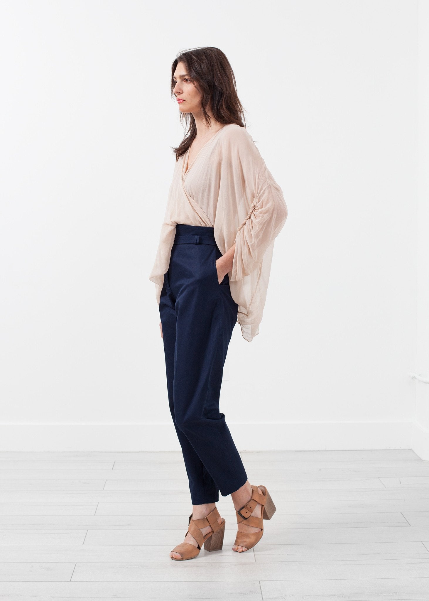 Louiza Babouryan offers a sweet cacophony of artistic vision for her Spring/Summer 2015 line. Dreamy pieces paired with flowing silhouettes invites to indulge on that delicious side. The Twist Top is the needed finish for a night out. Deep V-neckline. Delicate gathers on sleeves. Color Sand. 100% Silk. Made in U.S.A. Lana is wearing an X-Small.